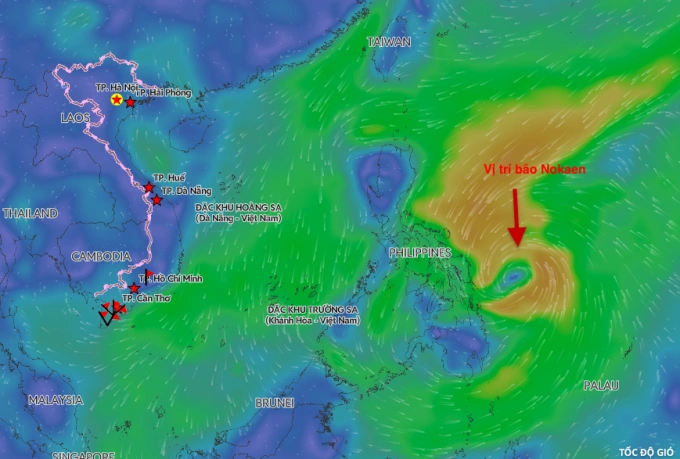 Bão Nokaen cấp 8 hiện ra ngoài khơi Philippines, không đậu vào Biển Đông nhưng gây gió mạnh trên các vùng biển Việt Nam.