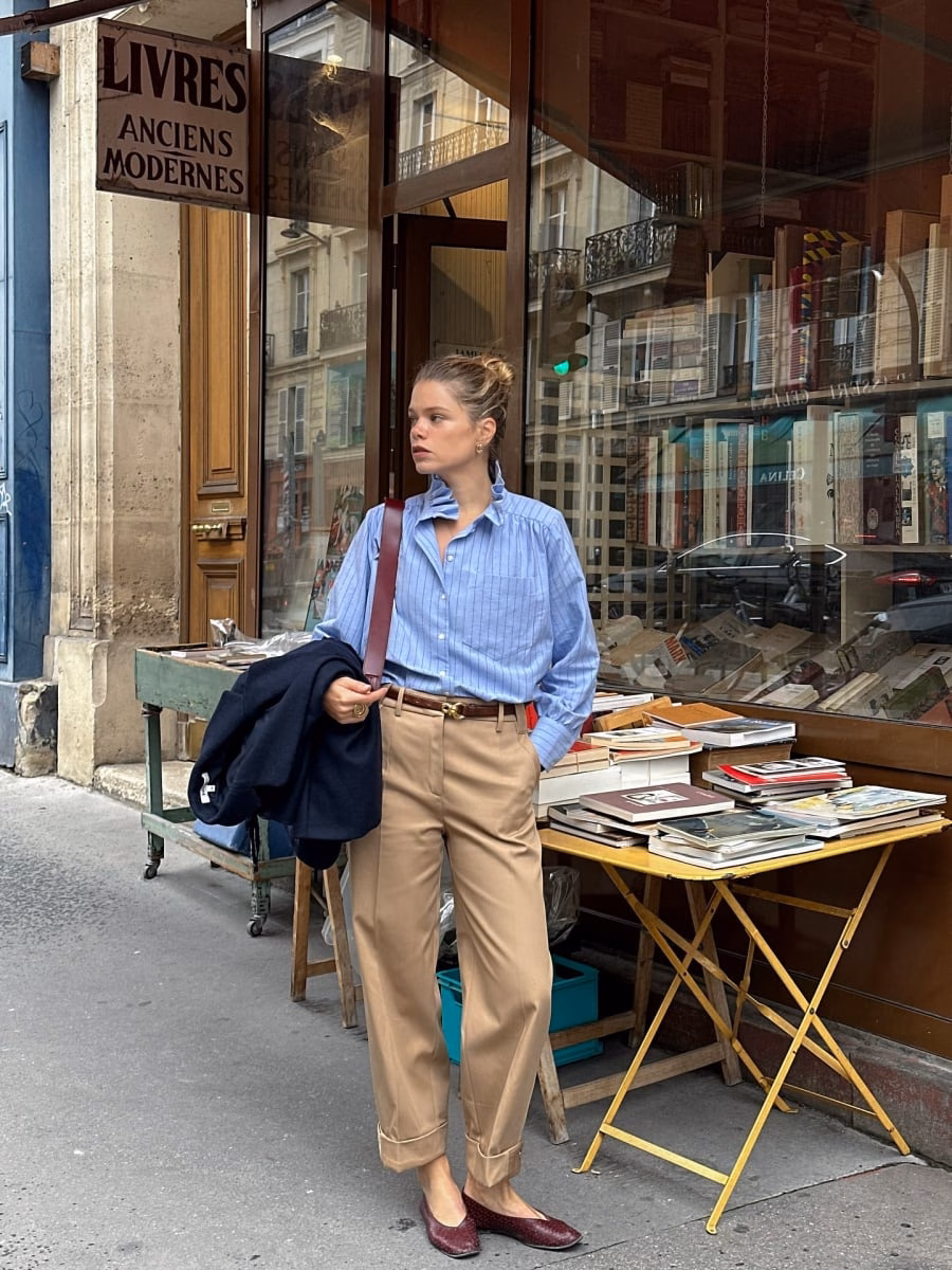 Trong nhịp sống đô thị, giày búp bê (ballet flats) là người bạn đồng hành không thể thiếu. Được làm từ da mềm, mũi tròn hoặc hơi nhọn, và màu trung tính như be, nude hay đen, chúng mang lại cảm giác nhẹ nhàng mà vẫn duy trì nét nữ tính đặc trưng của người Pháp.