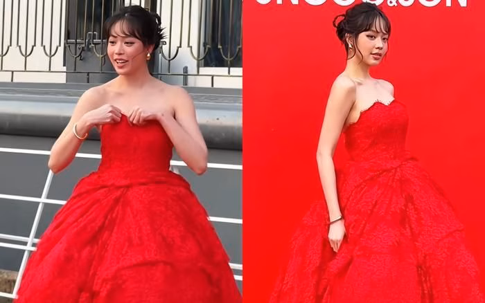 Trong buổi tiệc giải trí quy tụ các nghệ sĩ hàng đầu, Thanh Thủy lựa chọn chiếc váy cúp ngực màu đỏ rực rỡ, cắt xẻ táo bạo, tôn lên làn da trắng và dáng người mảnh khảnh. Điểm nhấn lớn nhất lại là kiểu tóc búi gọn kèm mái liền, kết hợp với lớp trang điểm “skin‑care” tự nhiên, tạo nên vẻ đẹp vừa quyến rũ vừa hiện đại.