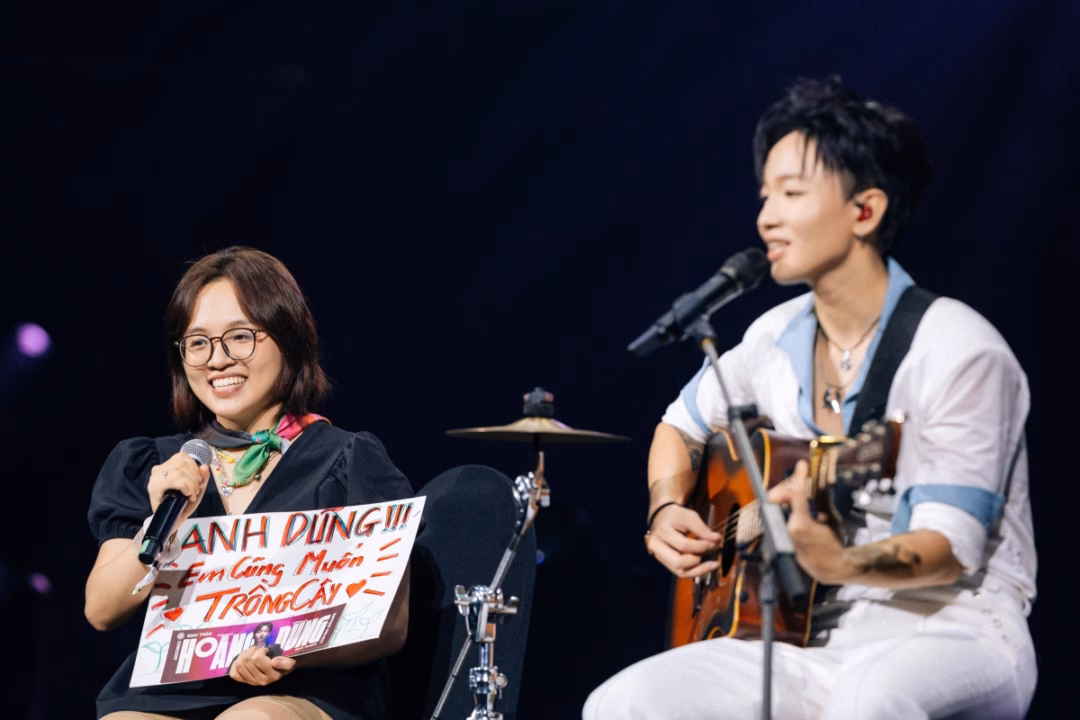 Bên cạnh các tiết mục solo, Hoàng Dũng còn kết hợp cùng các nghệ sĩ khách mời như NÂN, Vũ và Đen Vâu. Các màn trình diễn này đã nhận được sự hưởng ứng nhiệt liệt từ khán giả. Một số cặp tình nhân đã mang nhẫn và cầu hôn nhau trong bài hát “Tách”, trong khi các fan cũng mang bảng ghi tên ca khúc để yêu cầu Hoàng Dũng thể hiện. Sự tương tác giữa Hoàng Dũng và khán giả đã tạo nên một bầu không khí đầy nhiệt và cảm xúc.