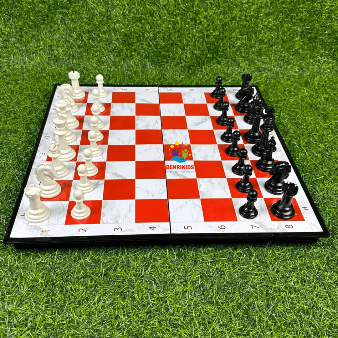 Đặc biệt, bộ cờ vua này có nam châm chắc chắn, giúp giữ các quân cờ ở đúng vị trí và tránh bị rơi xuống bàn cờ. Điều này giúp bạn tập trung vào trò chơi mà không cần lo lắng về việc các quân cờ bị rơi.