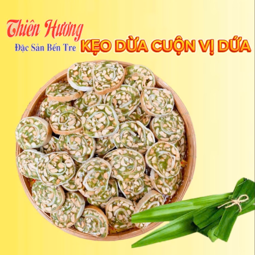 🔥 ĐẶC SẢN BẾN TRE – KẸO DỪA NƯỚNG VỊ LÁ DỨA CUỘN BÁNH TRÁNG ĐẬU PHỘNG – 200G đang giảm giá!