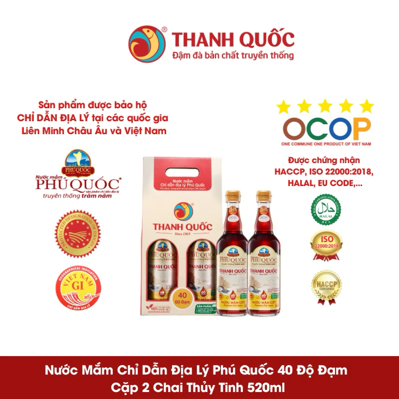 Nếu bạn đang tìm kiếm một sản phẩm nước mắm Phú Quốc chất lượng, Nước Mắm Chỉ Dẫn Địa Lý Phú Quốc – Thanh Quốc 40N là một lựa chọn tuyệt vời. Sản phẩm này được sản xuất tại Phú Quốc, Kiên Giang, với công nghệ hiện đại và nguyên liệu chất lượng cao.