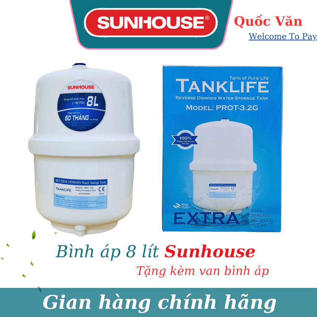 🔥 Bình áp nhựa 8 Lít Sunhouse – Tặng kèm van bình áp – Bảo hành 6 tháng đang giảm giá!